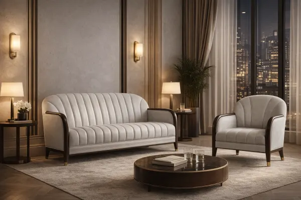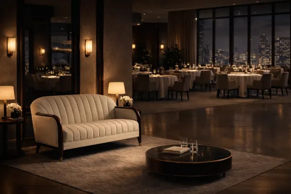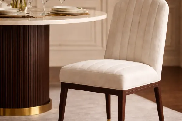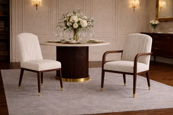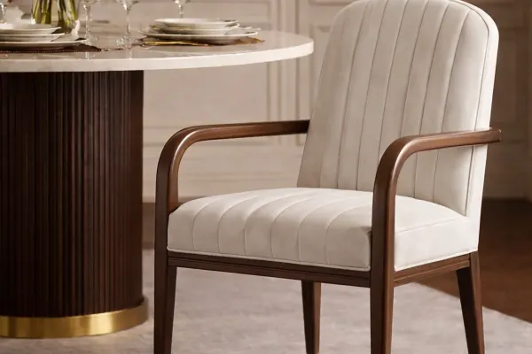 ← Collections · ÉON · Une élégance contemporaine façonnée par la retenue, la précision et une sensibilité intemporelle. Chaise de salle à manger, chaise et fauteuil en acajou, finition acrylique et daim Agrandir × ‹ › Ensemble canapé, salle d’attente ou salon Agrandir × ‹ › Demander un devis
